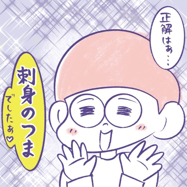 あはは!幼稚園最後のお弁当に刺身のつまー!!さすがアキくん、いつも私たちの想像を軽く超えてきますね!でも、お家でリクエスト通りの刺身のつま弁当を食べられて良かったです!卒園おめでとうございます!