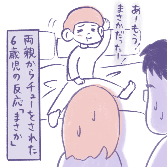 あはは!「まさかー!!」お父さんにもチューされて「まさか」なアキくんと、アキくんの予想外な反応に「まさか」なまるさんご夫婦(笑)「まさか」が大渋滞ですね(笑)