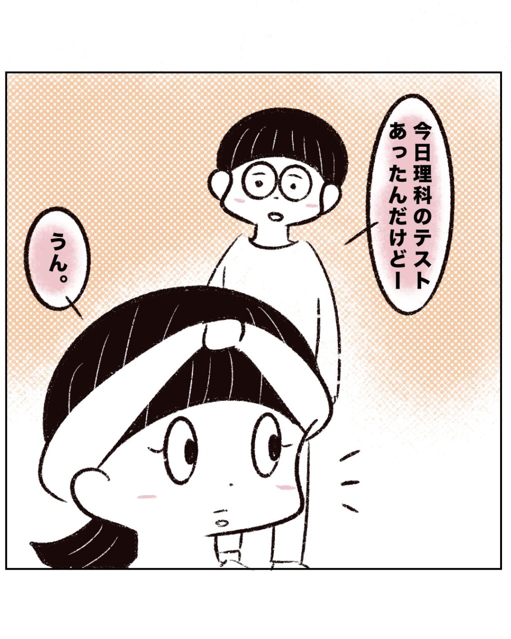 「今日理科のテストあったんだけどー」学校から帰ってくるなり、今日あった理科のテストについて話し始めるアキくん。もしかして点数がよくなかったのかな?と心配しながら、まるさんは耳を傾けます。