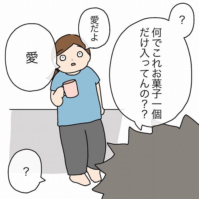 一個!?スナック菓子一個だけを袋に??袋勿体無くない??!でも凄くワクワクしてる、ちゃんと後ろで待ってたし・・・