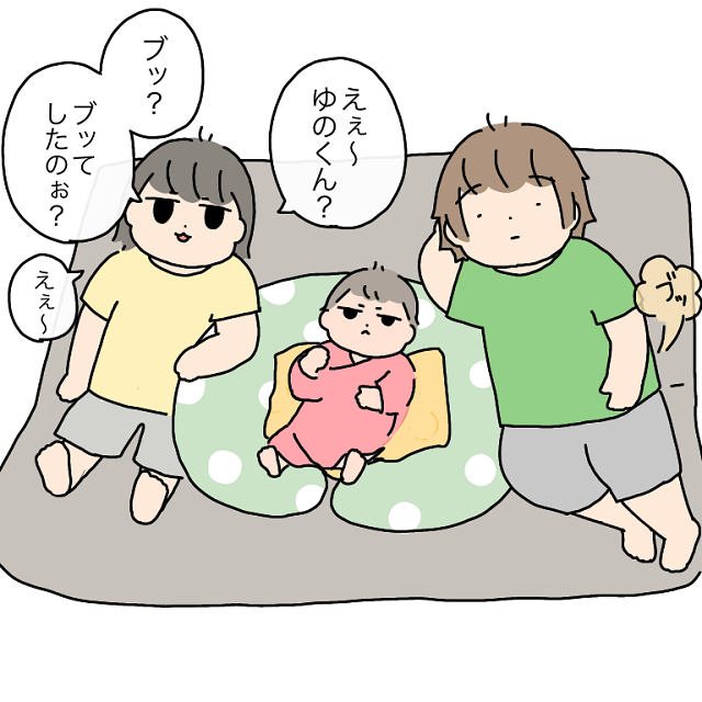 赤ちゃんの泣き声を聞いて、オムツとお尻拭きを持って駆け付ける姉二人。
