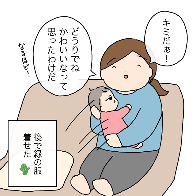 家にあった緑の服を着せたら、4歳の長女には「すいかだよね?」と言われました。スイカもいいなぁ~!