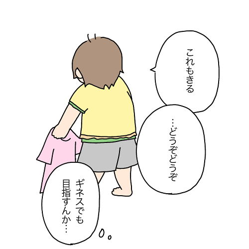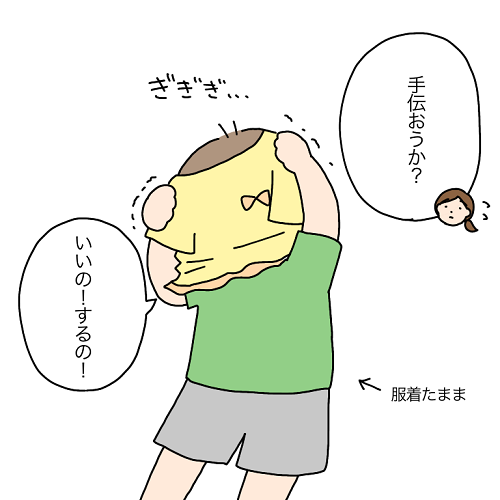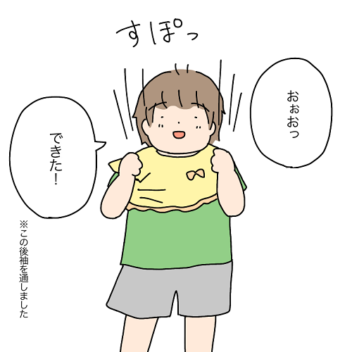 自分で服を着れるようになって、お着替えが楽しい様子のめのちゃん(長女)。