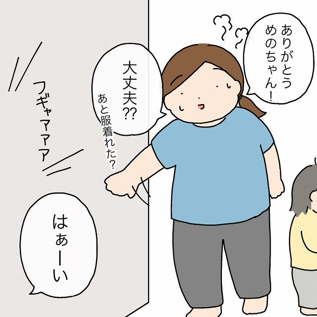 大急ぎでお風呂を上がると、まだ息子の泣き声が。でも長女は余裕そうな返事。