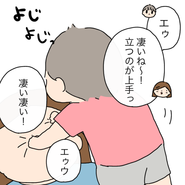 おお・・めめさん痛かったですねー!でも・・痛みを堪えてでも見守りたい気持ち、わかります!それにしても・・降り掛かる謎の冷たい液体とは・・いえいえ、そんなことより記念すべき掴まり立ちにたっぷり思いを馳せてくださいね(笑)