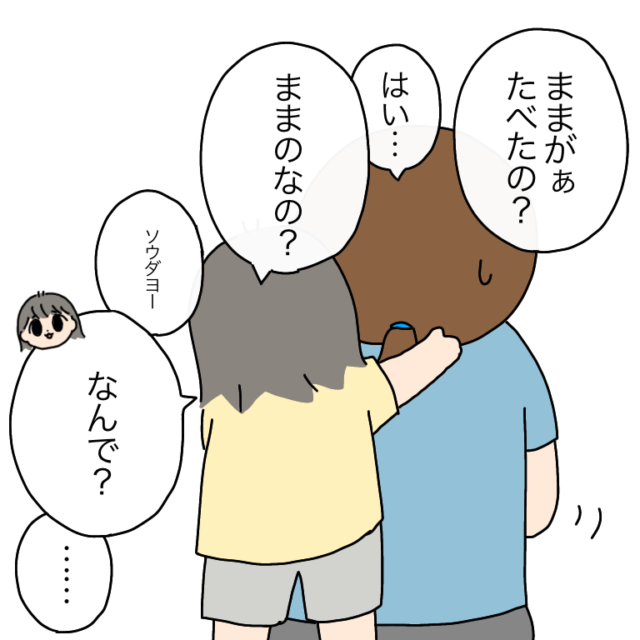 4歳めのちゃん、3歳なのちゃん、0歳ゆのくんの3人のお子さんを育てるめめ(@Naru9nari)さん、今回はママのおやつのお話です。大人用しかないおやつは隠れてこそっと食べるようなのですが・・・