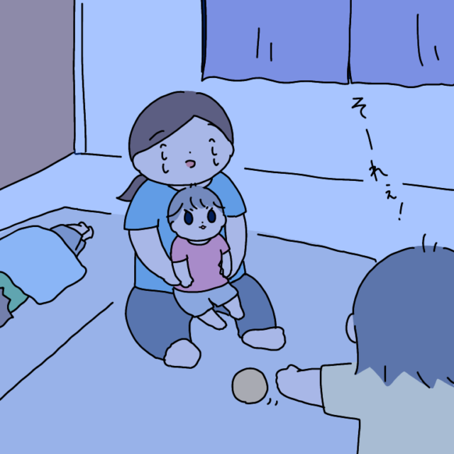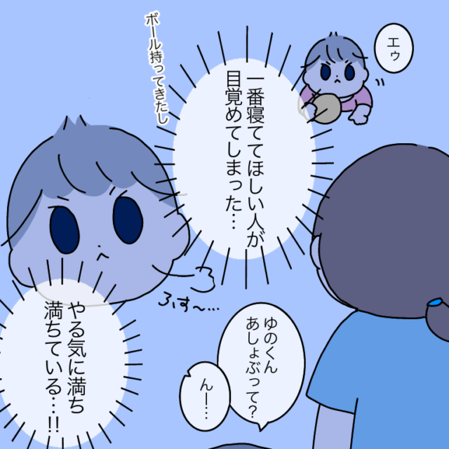 寝ていたはずの末っ子が、ボールを持って登場ー!