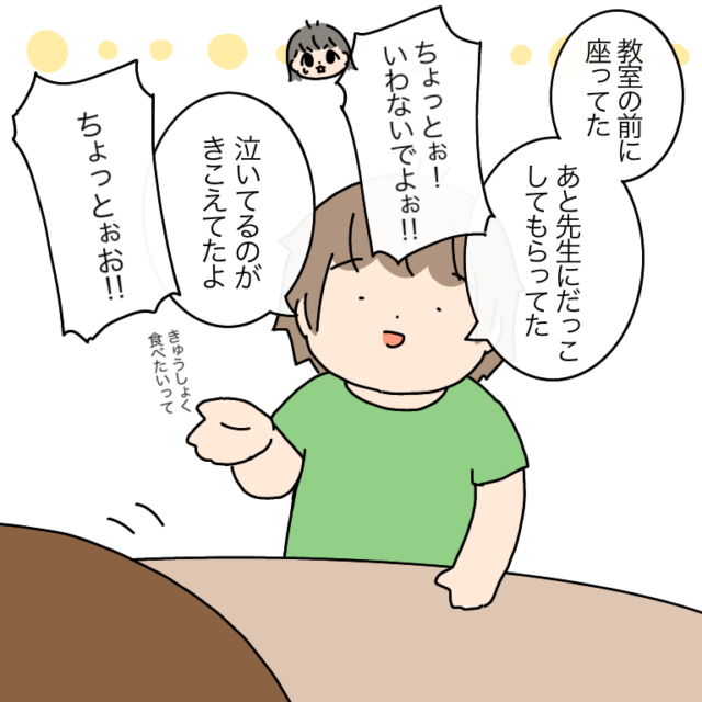 泣いていたり、先生に抱っこされている姿を長女にばっちりと見られていました。