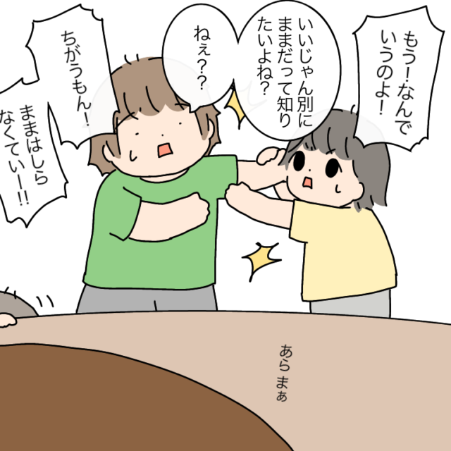 部屋には次女の「いわないでよぉ!!(怒)」が響き、姉妹は大騒ぎ。