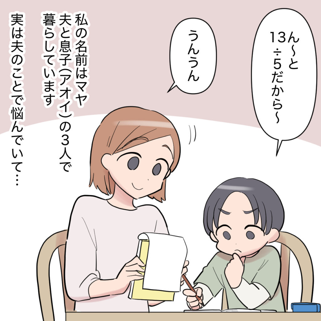 私の名前はマヤ。夫と小学生の息子アオイの3人で暮らしているのですが、実は夫のことで最近悩んでいて・・。