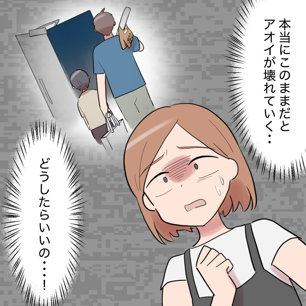 そして2人で外に出て行く後ろ姿を見ながら、「本当にこのままだとアオイが壊れていく・・どうしたらいいの・・」と考え込んでしまいました。