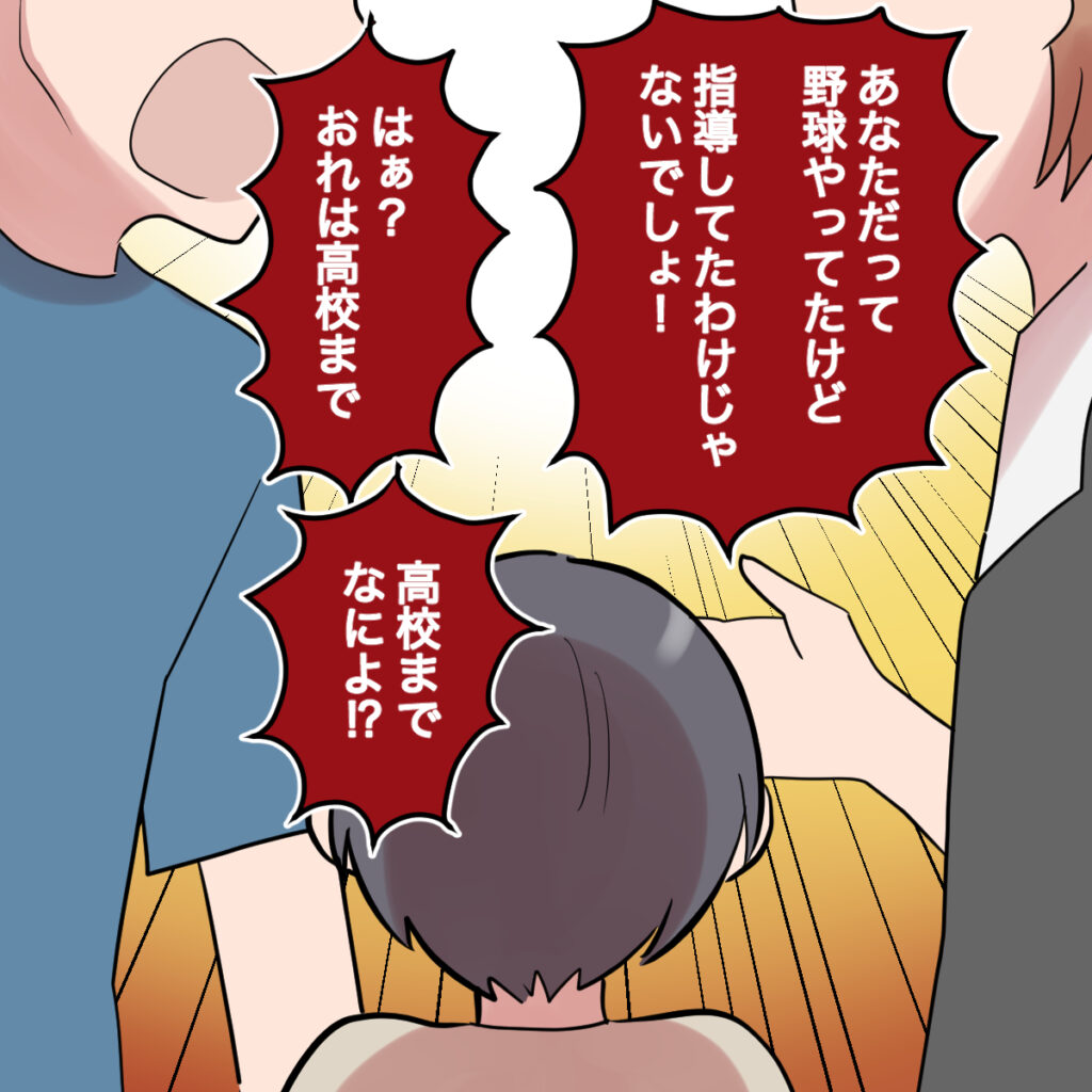 「あなただって野球やってたけど指導していたわけじゃないでしょ!」と言う私に「はぁ?俺は高校まで」と言うとので「高校までなによ!?」と聞きました。