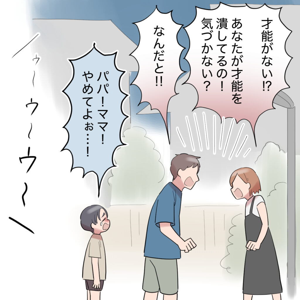 私はアオイの前でひどいことを言う夫が許せず「才能がない!?あなたが才能を潰してるの!気づかない?」と言い合いは更にヒートアップ。しばらくするとサイレンの音が聞こえてきました。