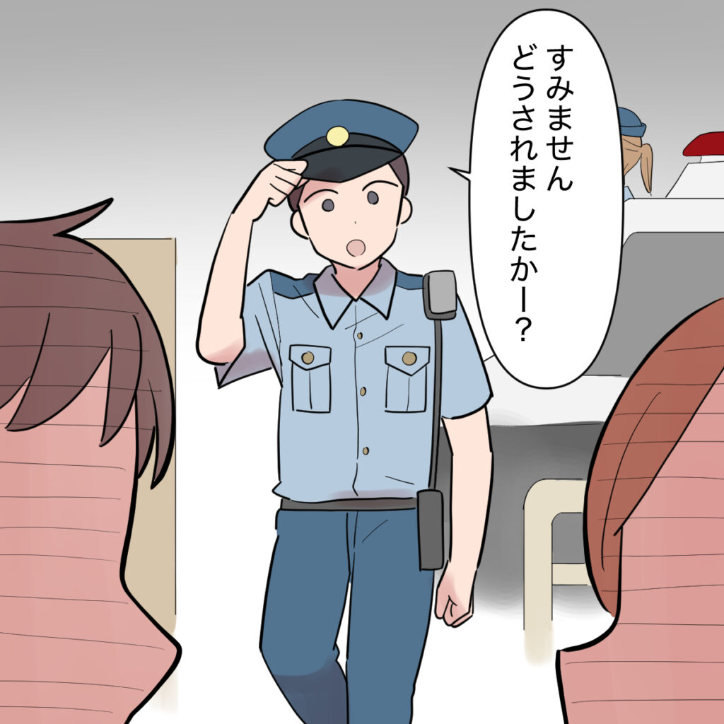 しばらく言い合っていると、「すみません、どうされましたか?」と警察官が現われたので、ようやく私たちはハッとして口論が止まりました。