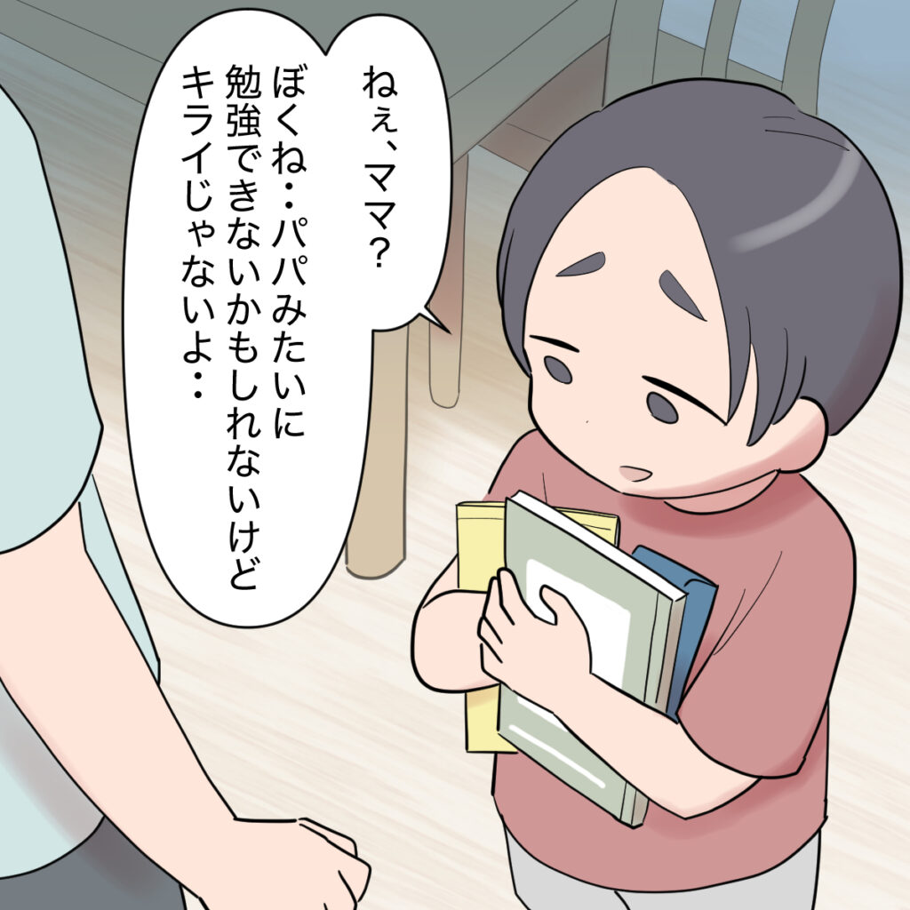 「ねぇ、ママ?ぼくね・・パパみたいに勉強できないかもしれないけどキライじゃないよ・・」そう静かに言い出すのを聞いて、