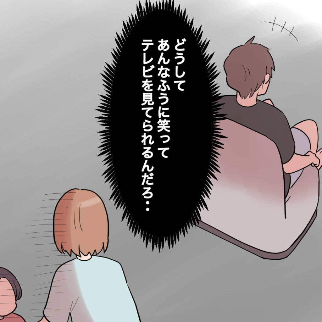 こんな状況でも平気でテレビを見ている夫、「どうしてあんなふうに笑って笑っていられるんだろ・・」と呆れる私。
