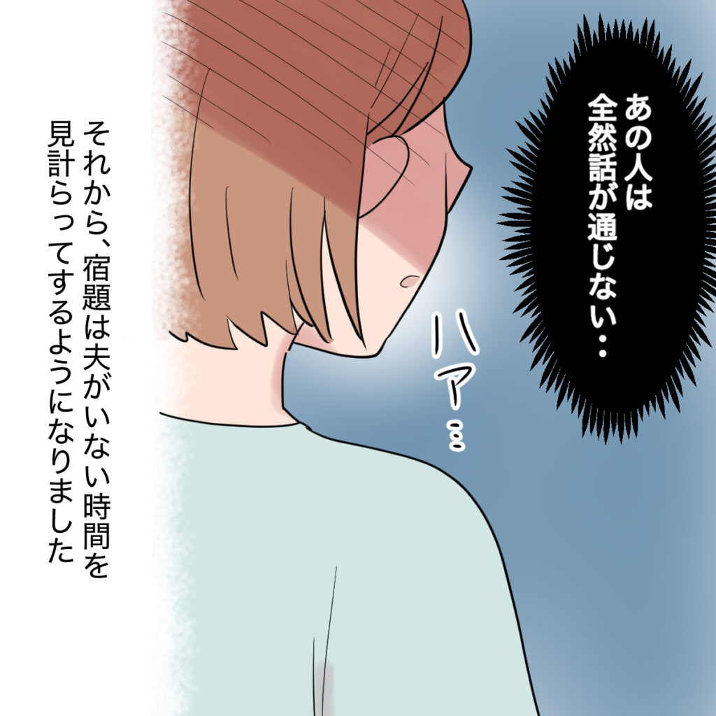 そう思い、それから、宿題は夫がいない時間を見計らってするようになりました。