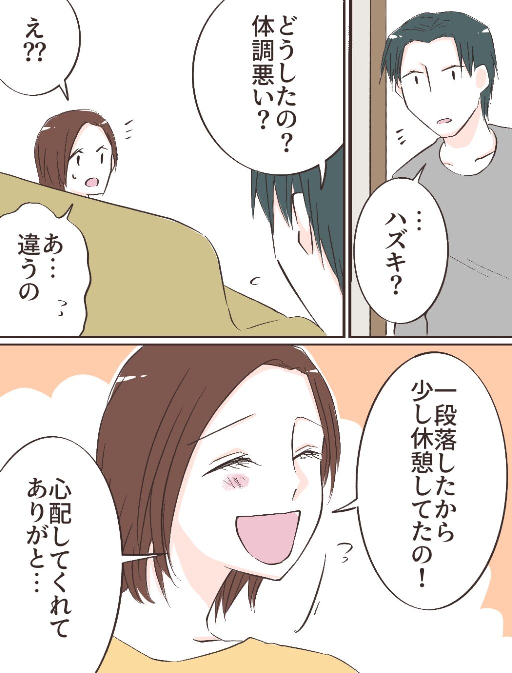 ハズキさんの家事のできなかった部分を指摘するリヒトさんは、「やることリストを作成し、「慣れればできるよ」とハズキさんを励ましました。その後、休日もいつも通りのルーティンを過ごすリヒトさんに合わせ、同じように朝食を準備するハズキさんは、リヒトさんの邪魔にならないよう、静かに掃除し、ひと段落とソファに座ると、部屋から出て来たリヒトさんに休憩してたと言うと、「いつも時間がかかるのは、休んでいるからじゃないかな??」と言い出し、「時間の使い方を見直した方がいいかもしれない」とタイムスケジュールを作るリヒトさん、こんながんじがらめの生活は耐えられそうにありませんよね。