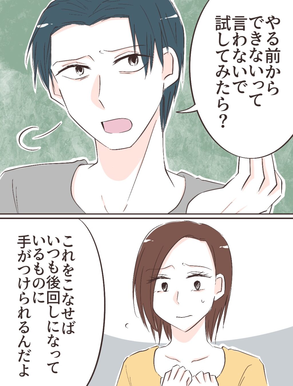「やる前からできないって言わないで試してみたら?これをこなせばいつも後回しになっているものに手がつけられるんだよ」そう言った後、