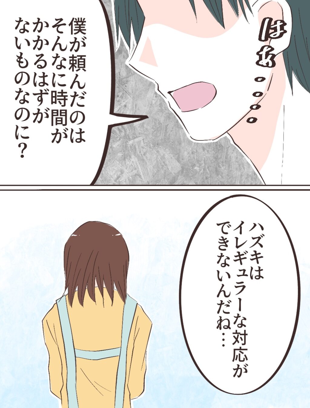 「はぁ・・僕が頼んだのは、そんなに時間がかかるはずがないものなのに?」と呆れながら言うリヒトさんは、「ハズキはイレギュラーな対応ができないんだね・・・」と呟いたのでした。