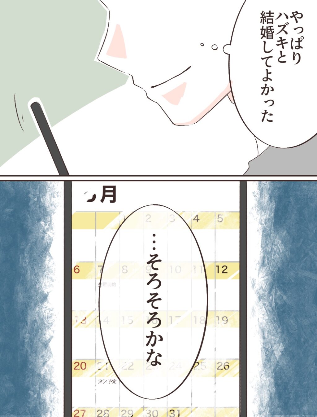 部屋に戻った後、スマホを眺めるリヒトさん。どうやらハズキさんの生理周期を調べていたようでした。それまで、生理周期を予測するために、トイレにまで行ったリヒトさんが、「やっぱりハズキと結婚してよかった」と呟き狙いを定めた数か月後のこと。想定通り、ハズキさんの妊娠が発覚!妊娠までもコントロールしようとするリヒトさん、神経を疑ってしまいますよね。