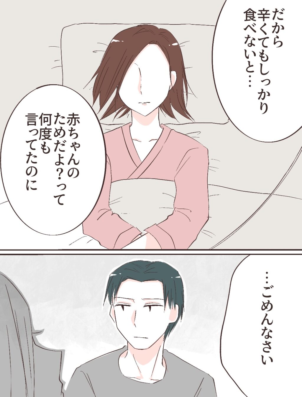 「だから、辛くてもしっかり食べないと・・赤ちゃんのためだよ?って何度も言ってたのに」と病室のベッドで横たわるハズキさんに言うリヒトさん。そう言われて「・・ごめんなさい」と謝るハズキさん。