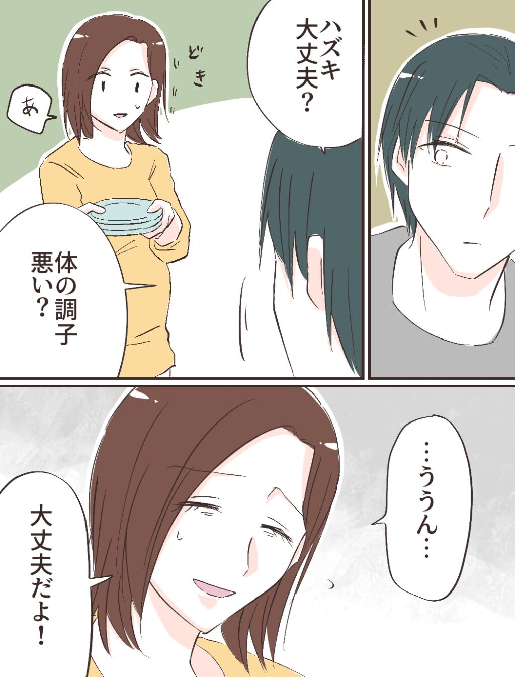 ハズキさんが料理を作り、家事は代行サービス、そしてそれ以外の「妻の代わり」は同居するユウコさん。どう考えても異常な状況です。でも冷静でいられなくなってしまっているハズキさんには、「私が頑張る」という選択しかなくなってしまっているようですね。おなかの赤ちゃんが一番なのに。早くそれに気がついてほしいです。