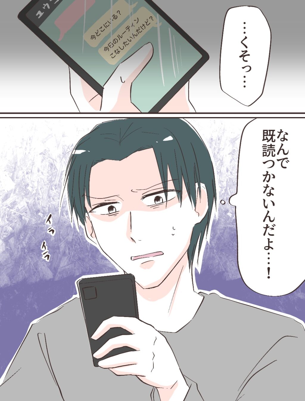 すかさずスマホでメッセージを送るリヒトさん。でも、「・・くそっ・・なんで既読つかないんだよ・・!」とみるみる不機嫌になりました。