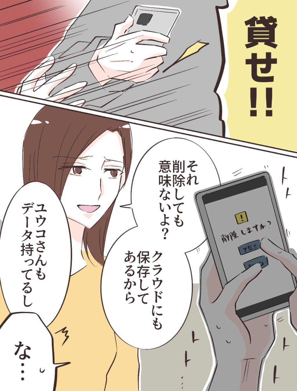 リヒトさんは「貸せ!!」と言って私からスマホを取り上げると必死に動画や写真を削除し始めましたが、私が「それ削除しても意味ないよ?クラウドにも保存してあるから。ユウコさんもデータ持ってるし」と平然と言うと、リヒトさんは悔しそうに「な・・」と言って手を止めました。