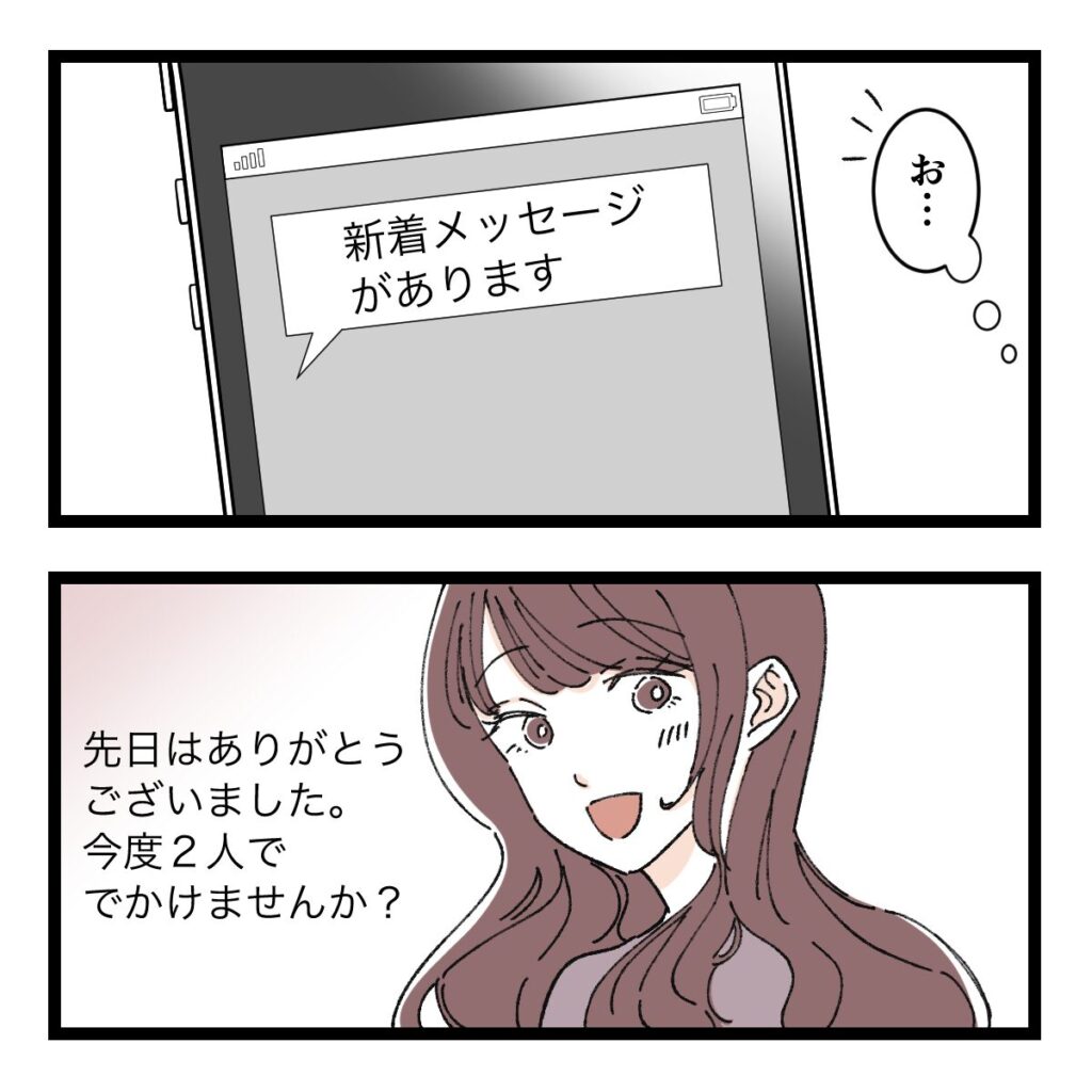 テレパシーでも通じたかのように、このタイミングで偶然にも彼女からメッセージが届いた。『先日はありがとうございました。今度2人で出かけませんか?』