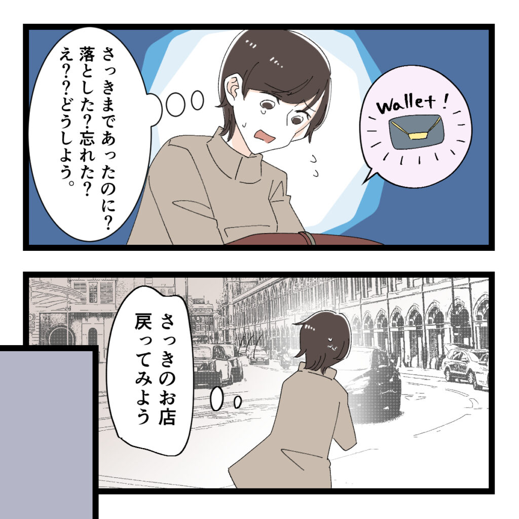 「財布がない!さっきまであったのに?落とした?忘れた?え??どうしよう」と動揺するマイさんは、「さっきのお店戻ってみよう」と駆け出しました。