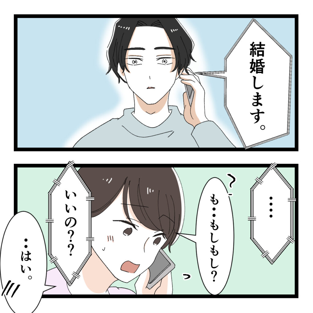 「もしもし?お母さん?私さ、結婚することにしたよ」そう言うと、「とうとう?ヒロトくんも待たせたわよね」と料理をしながらお母さんが言いました。