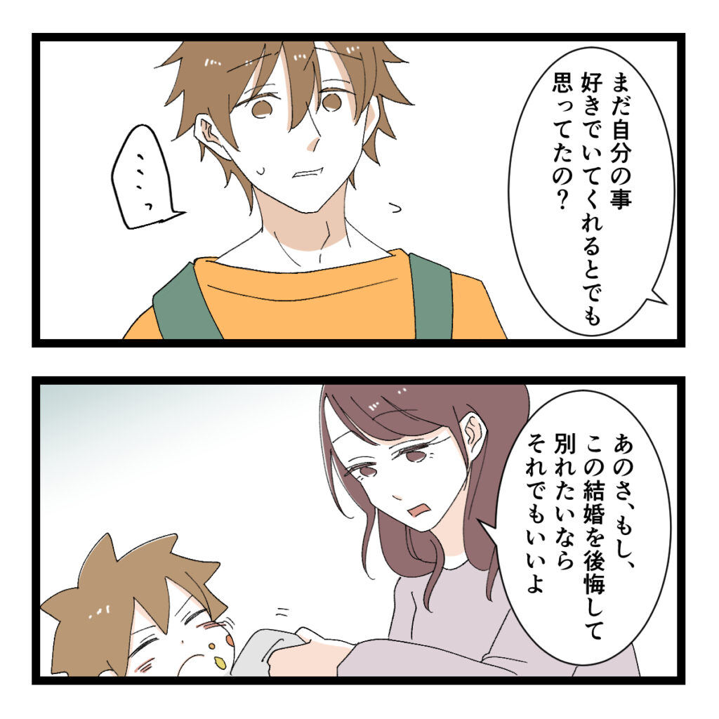 「まだ自分の事好きでいてくれるとでも思ってたの?」マイさんのことを知るはずがないと思っていたアユミさんに、ズバリ言われて何も言い返せないヒロトさんです。「あのさ、もし、この結婚を後悔して別れたいならそれでもいいよ。」とアユミさんは無表情のままいました。