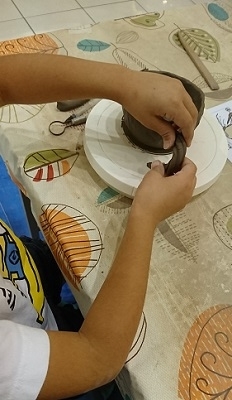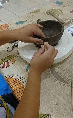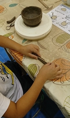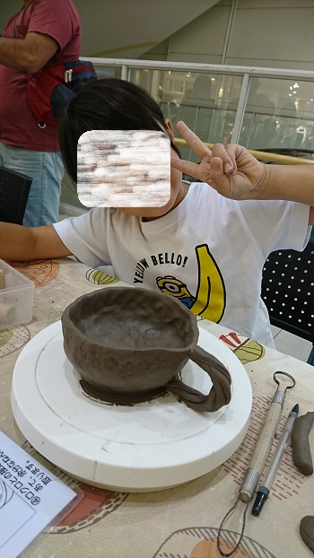 すると、1階で常滑焼の陶芸体験をやっているのを見つけました。