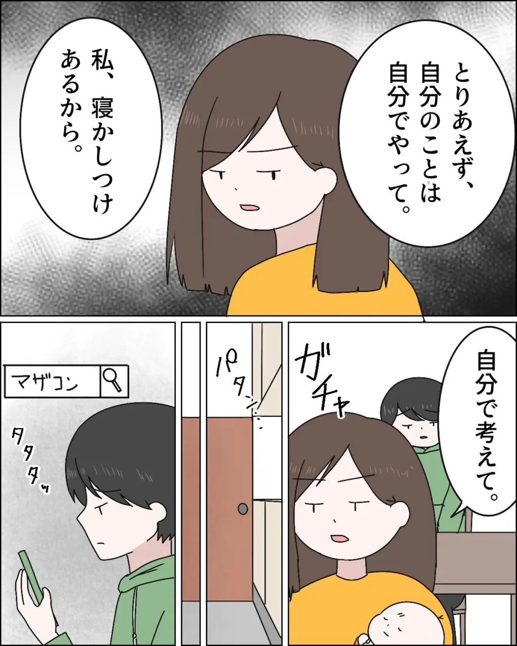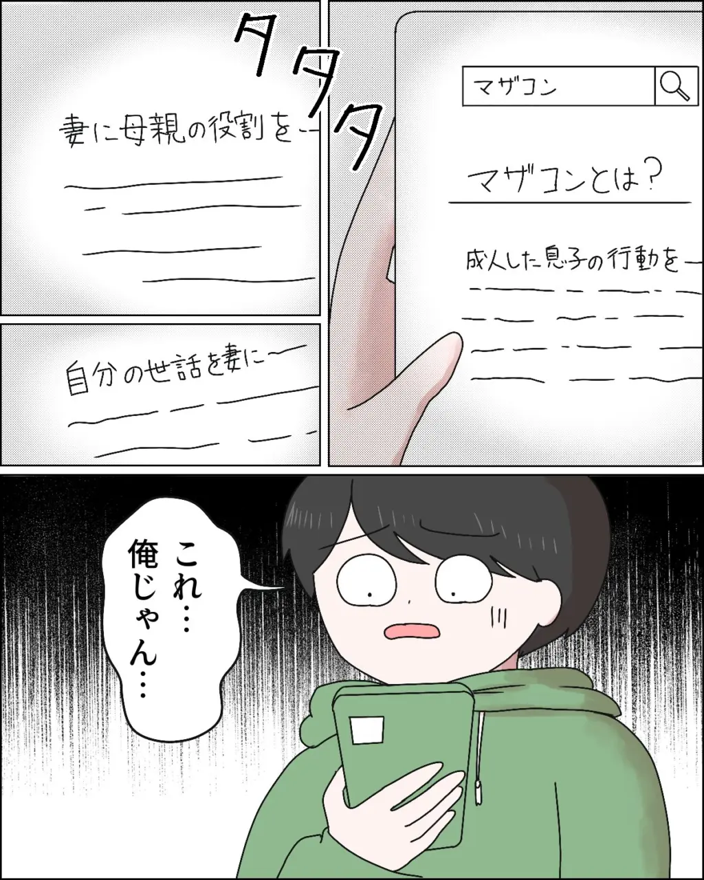 「とりあえず、自分のことは自分でやって。私、寝かしつけあるから。自分で考えて」そう言ってヨウコさんは部屋を出て行きました。その後、マサオさんは『マザコン』を検索。