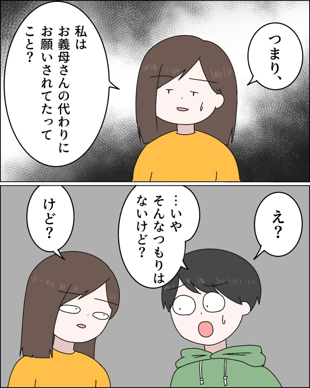 「つまり、私はお義母さんの代わりにお願いされてたってこと?」呆れたながらそう言うと、「え?・・いやそんなつもりはないけど?」とマサオが言うも、「けど?」と聞き返すと、