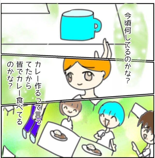 カレー作るって言ってたから皆でカレー食べてるのかな?