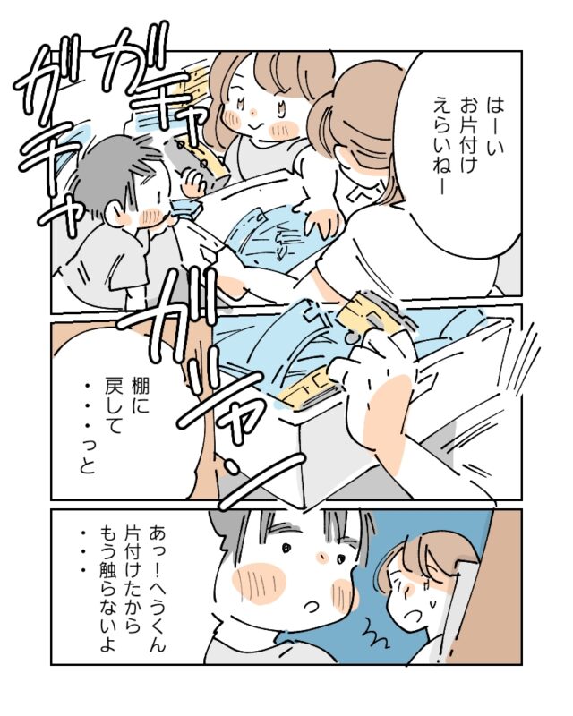 あはは!へうくんにやり直されてしまいましたね(笑)きっちりキレイにお片付けしてくれるへうくん・・・我が家もお願いしますー!!