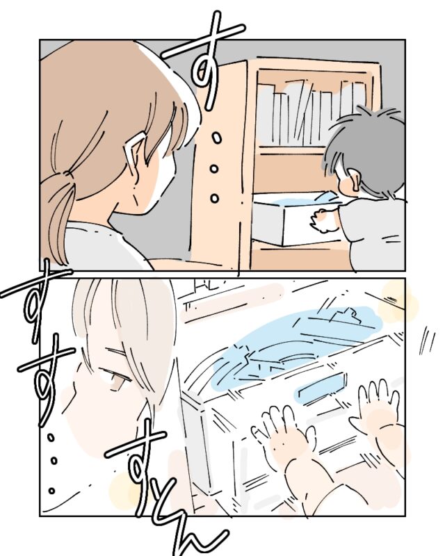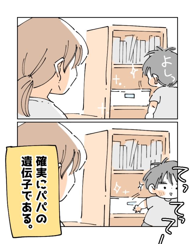 確実にパパ似ですね。ママが片付けたおもちゃ箱を片付け直す1歳息子|マキノの育児日記