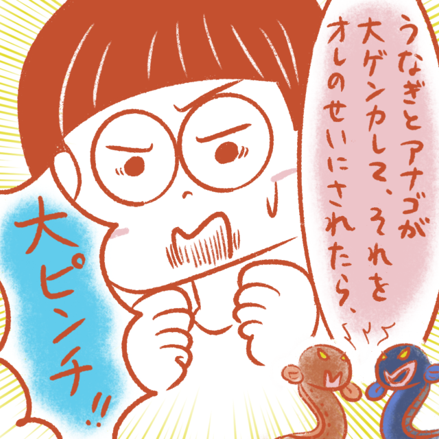 あはは!ウナギとアナゴが喧嘩してアキくんのせいに・・・2匹の喧嘩の理由がとっても気になりますね(笑)あ、ちなみに私も鰻派です!
