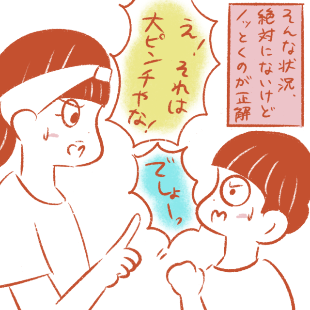 絶対そんな状況ない!(笑)7歳息子の考える大ピンチがぶっ飛んでて返答に詰まったが・・とりあえず乗っとこ!