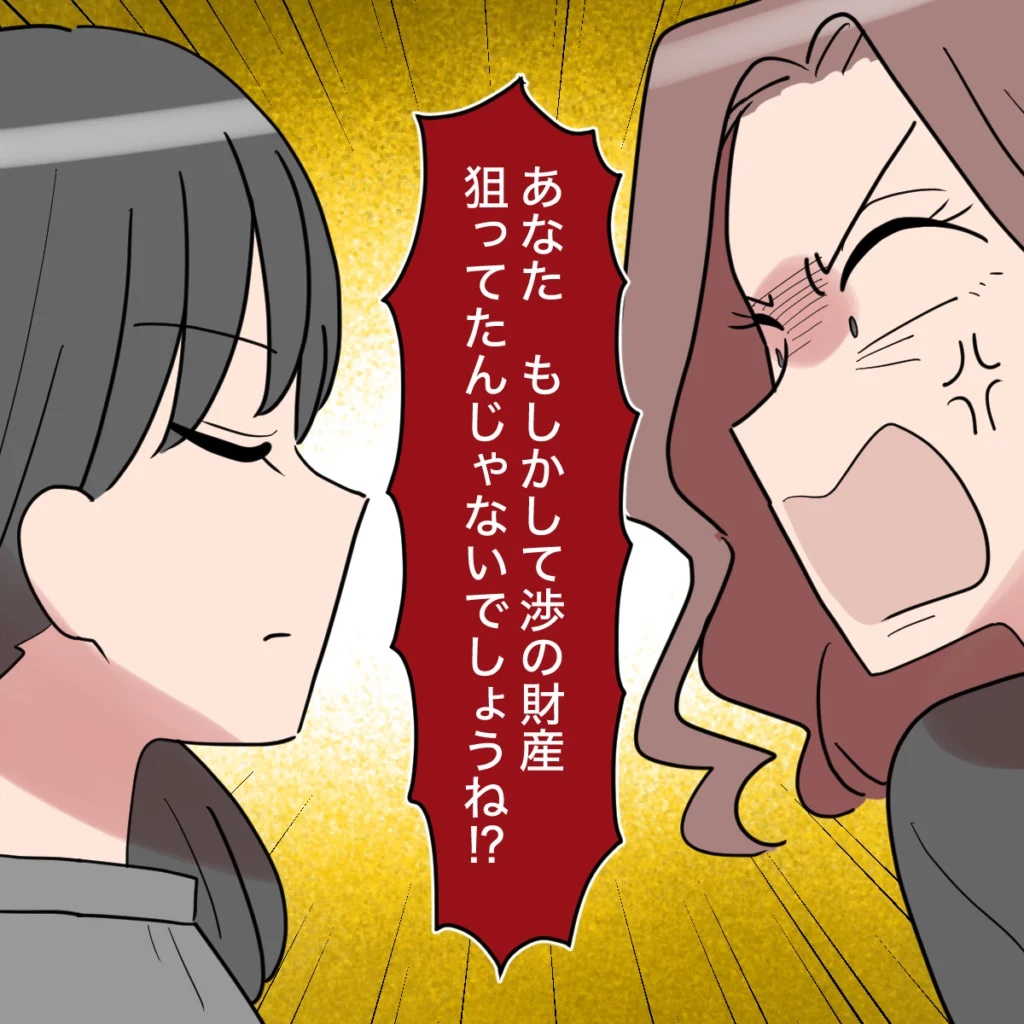 そして、私を鋭い目つきでにらむと「あなた、もしかして渉の財産を狙ってたんじゃないでしょうね!?」と声を荒げました。まったく人聞きの悪い話です。お母さんの財産を狙っていたのは、どう考えても渉と祥子さんの方。高齢になった頃合いを見計らって、気遣うような連絡をしてきて、それだけでお母さんの心が動くとでも思ったのでしょうか。