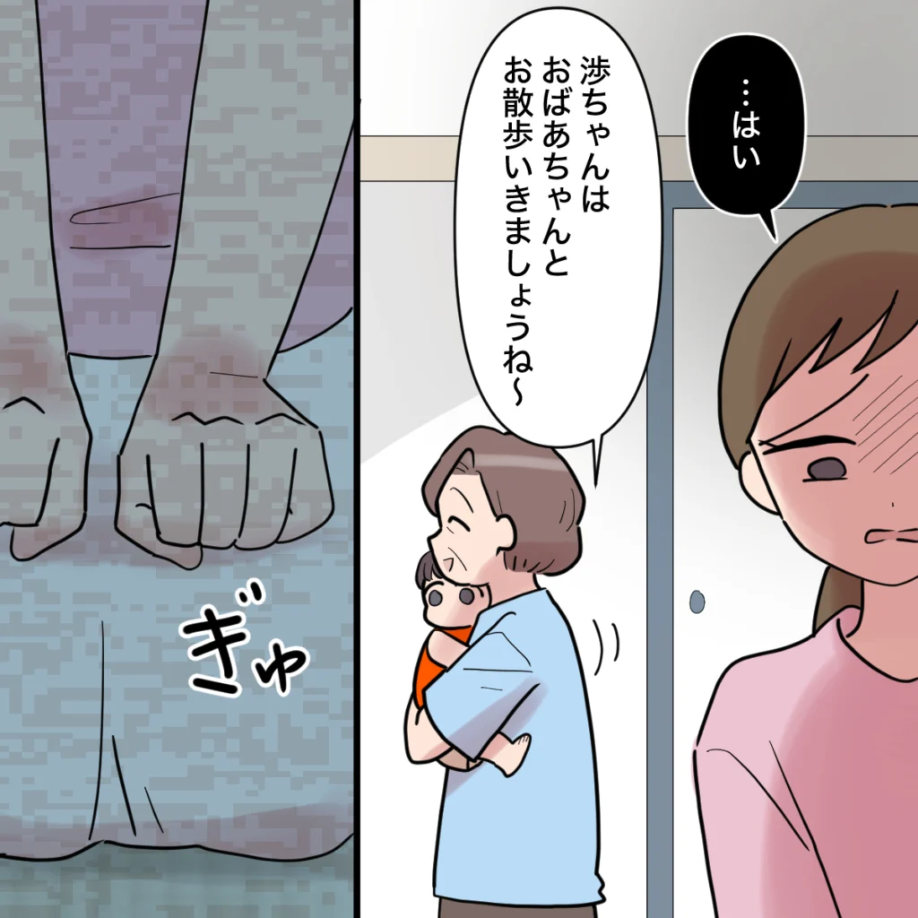 私に拒否権などあるはずもなく「・・はい」と言うしかありませんでした。家のことだけでも手一杯なのに、さらに仕事まで私がしなくてはいけなくなるなんて・・。私にできるのだろうか?でも、やるしかない・・。不安に押しつぶされそうな私の後ろを、「渉ちゃんはおばあちゃんとお散歩いきましょうね~」と渉を抱いた義母が我関せずといった様子で笑顔で通り過ぎます。家事も介護も仕事も・・大変なことは全部私。私だって渉のお世話をしたいのに・・。