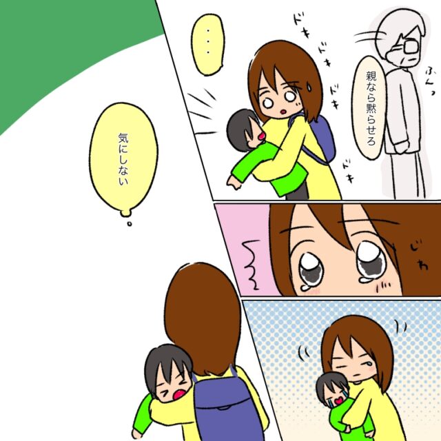 かける言葉や言い方を変えてみたりとあの手この手を尽くすメイさんですが、癇癪を起こしているトールくんには届きません。「うるさい、親なら黙らせろ」のことば、気にしないと自分に言い聞かせても涙が出そうになってしまう気持ち、わかります。