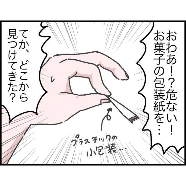 慌てて確認すると、口の中からお菓子の個包装の欠片が・・・!