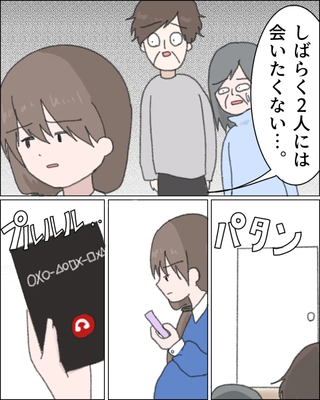 私は「しばらく2人には会いたくない・・」と言って部屋を出ました。自分の部屋に行った私は、しばらく考えて電話をかけました。