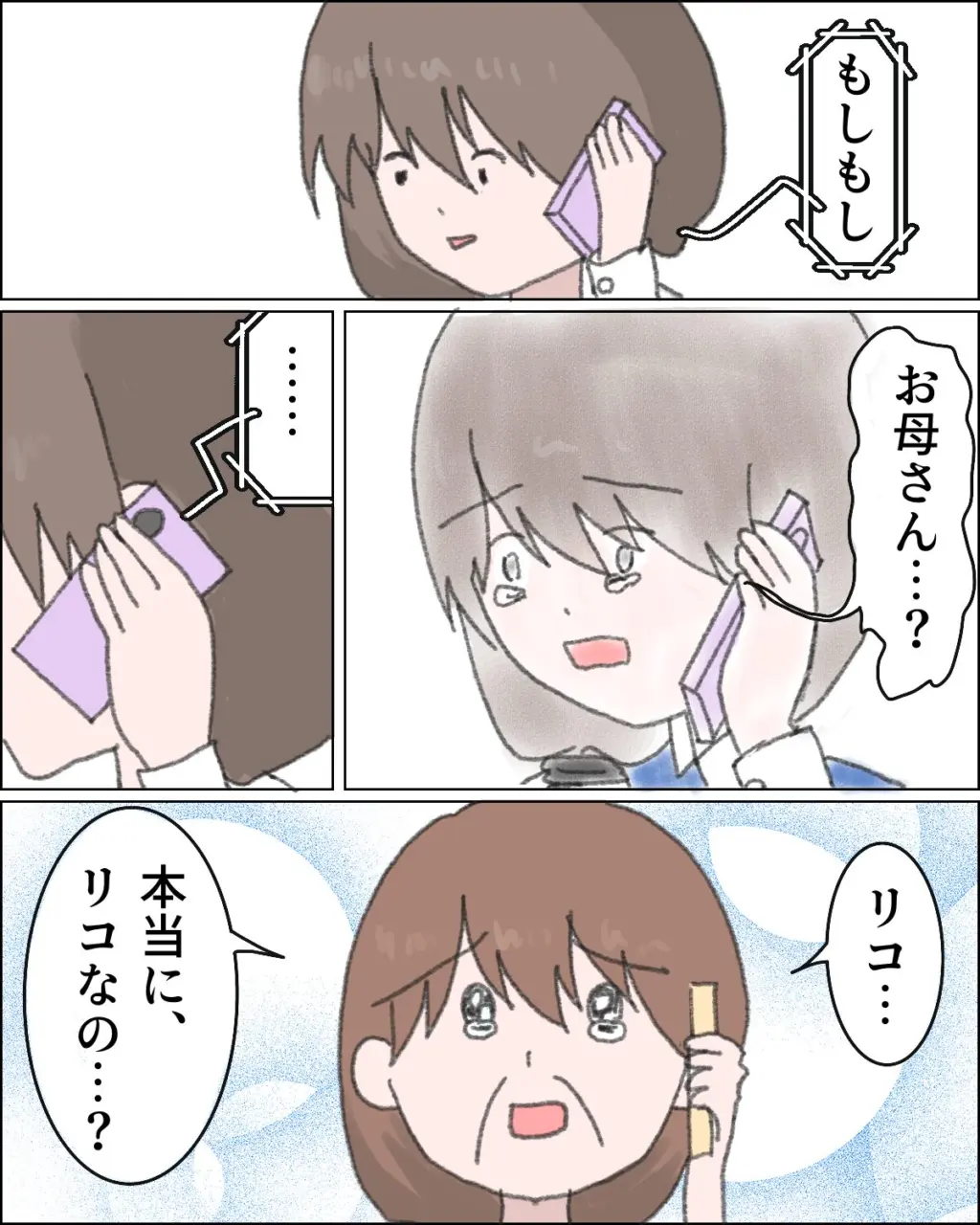 勇気を出してお母さんに電話をかけたリコさん。驚きながらも嬉しそうなお母さんは、わずかな望みをかけてずっとずっとリコさんからの連絡を待っていたのでしょうね。