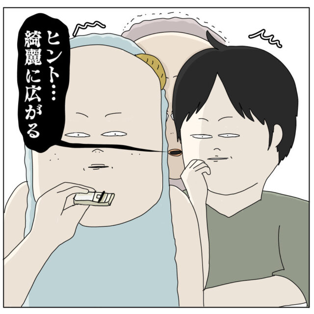 なかなか正解が出なそうだったから笑いを堪えながらヒントを出したの。