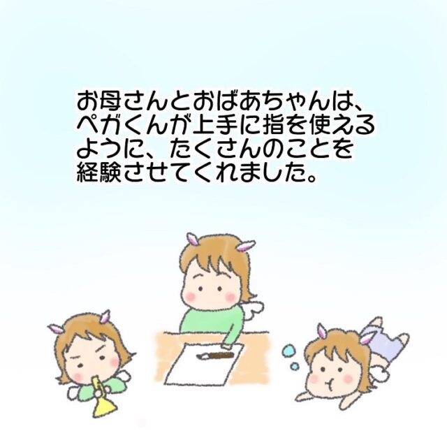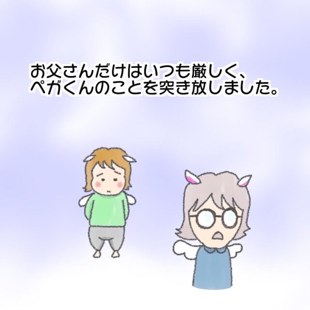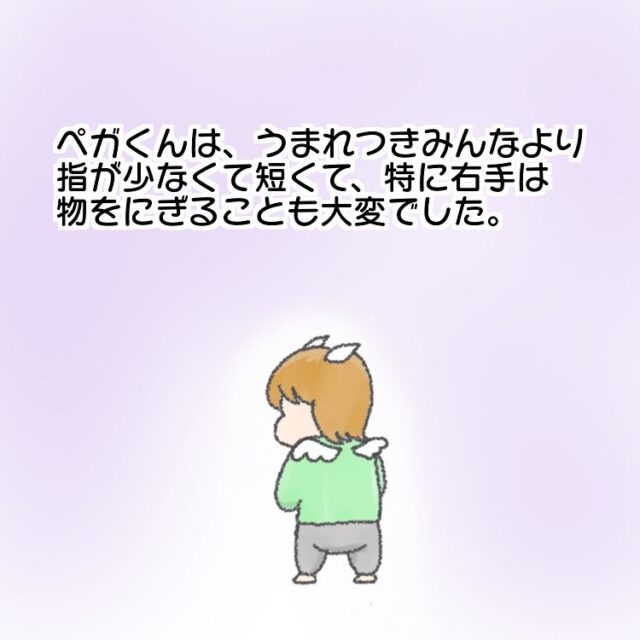 9歳の女の子わっちちゃん、7歳の男の子まっちくん、1歳の男の子おちびくんの3人きょうだいのママであるねこじまいもみ(@neko_jima_imomi)さんから、今回はパパさんのお話を届けてくださいました。生まれつき指が少ないペガくんの物語、早速見てみましょう。