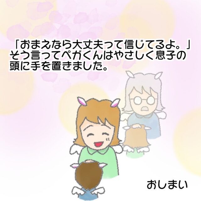 子どもの頃にお父さんからもらった言葉を胸に頑張ることができたペガくん。親からの信頼は、子どもにとってとてつもなく大きなパワーになるのですね。